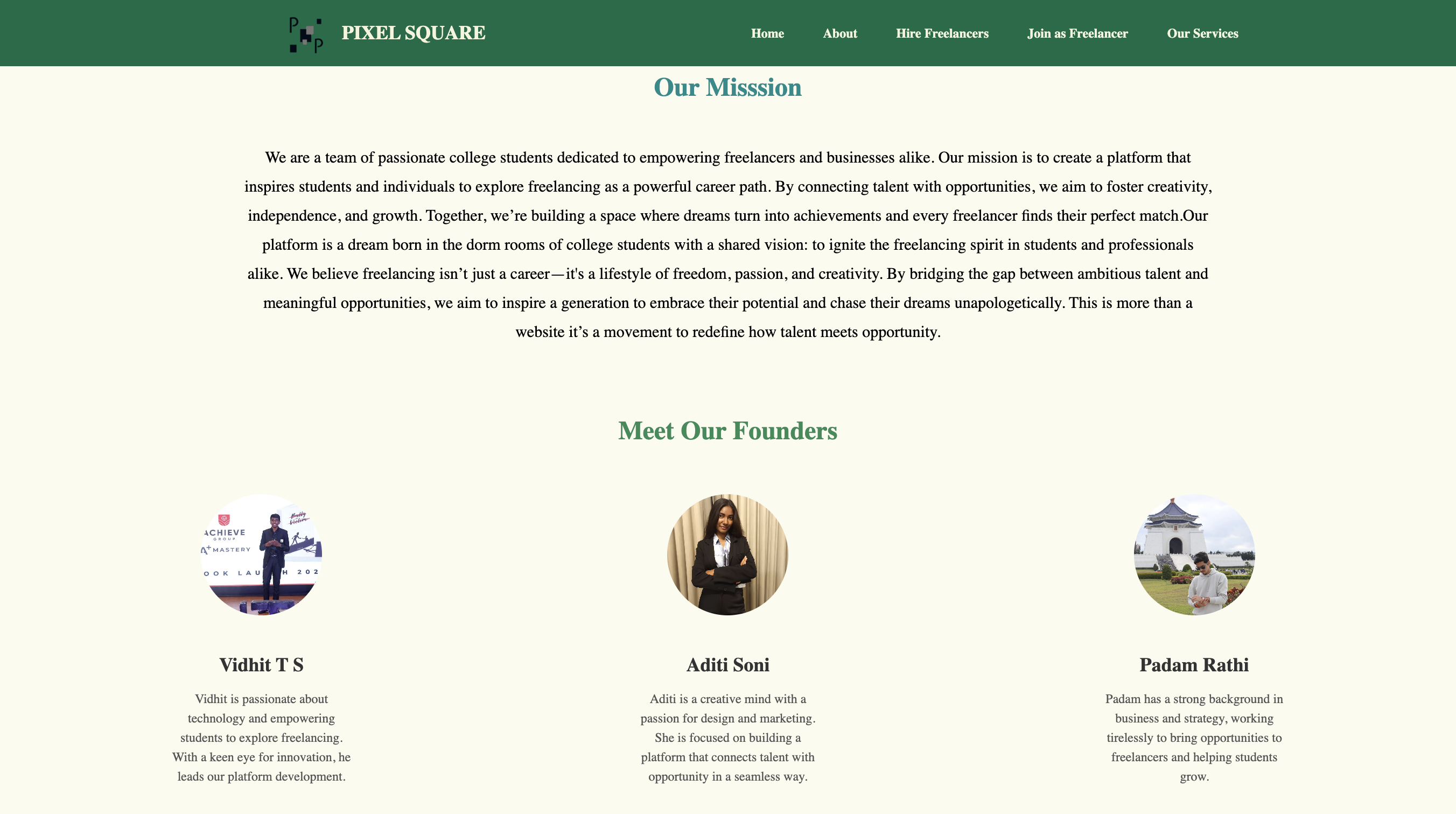 - Team Section - Meet the founders and their mission