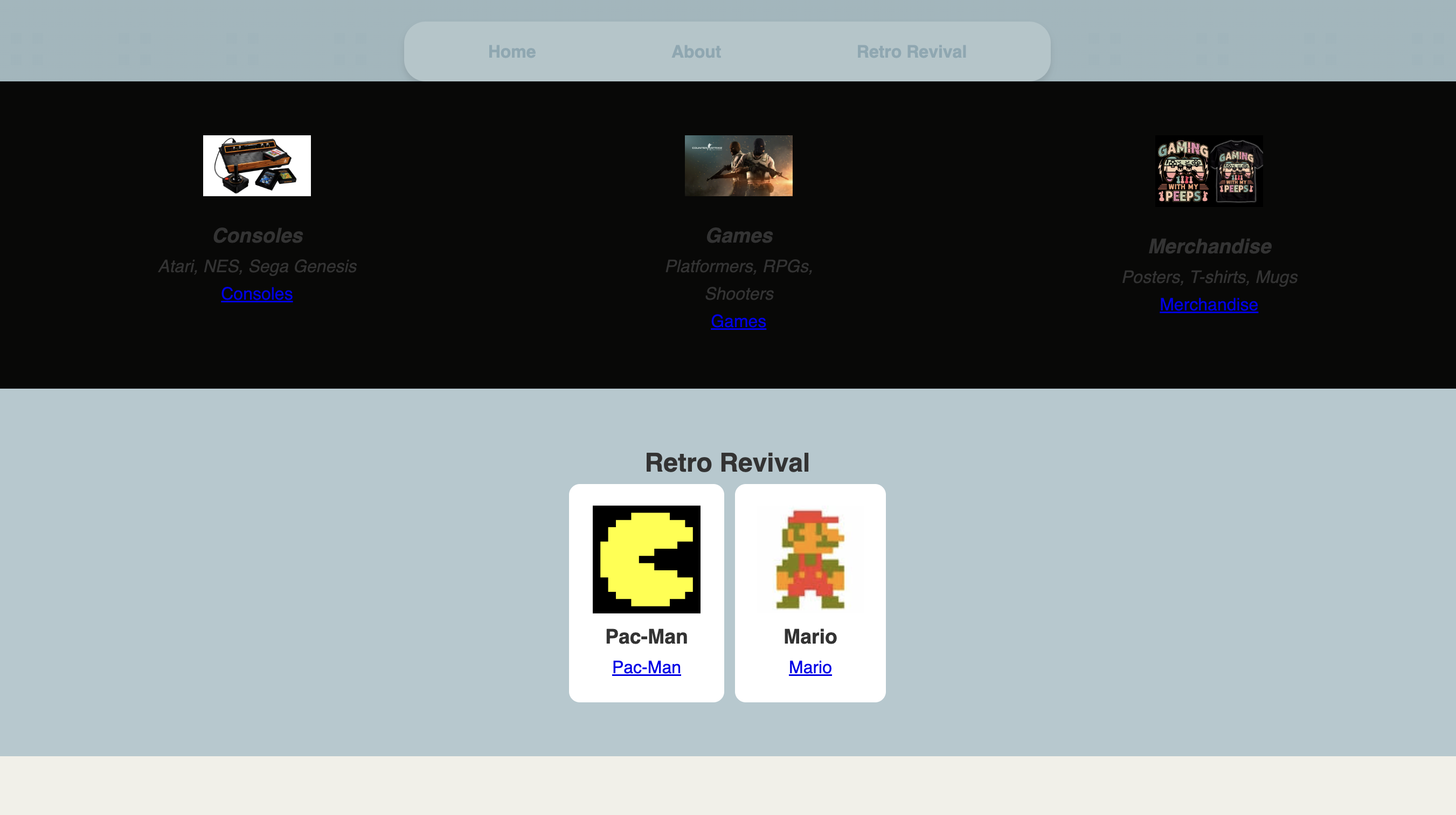- Retro Revival Section - Featured classics like Pac-Man and Mario