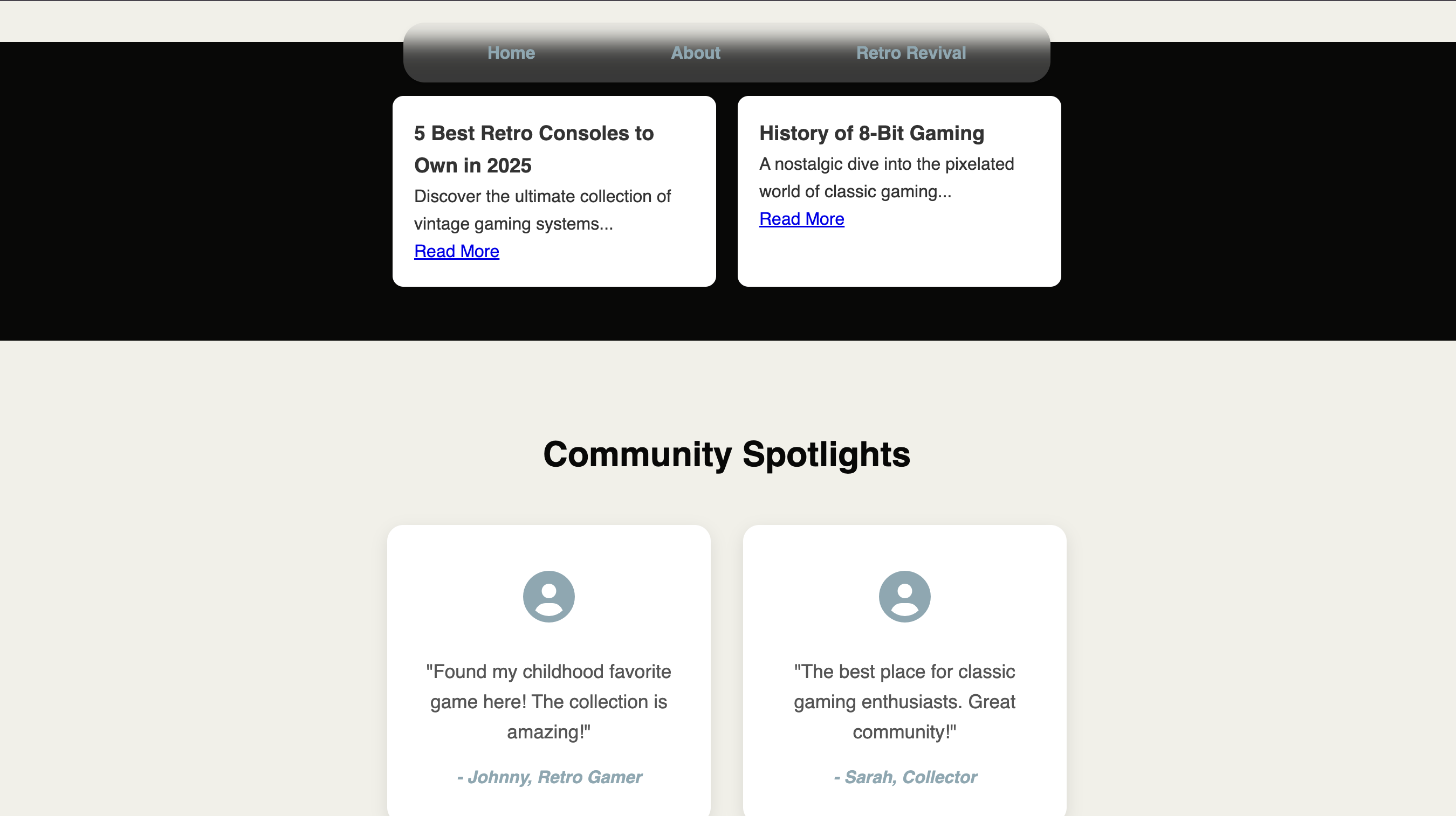 - Smooth navigation with Home, About, and Retro Revival sections